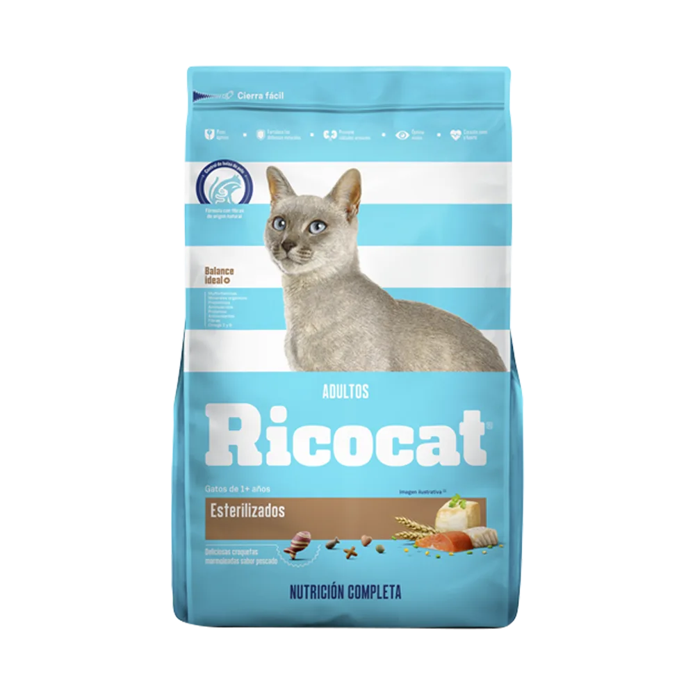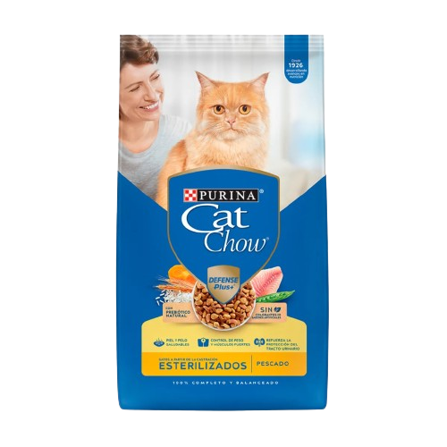 Alimento para gatos castrados sabor carne, pollo y pescado.