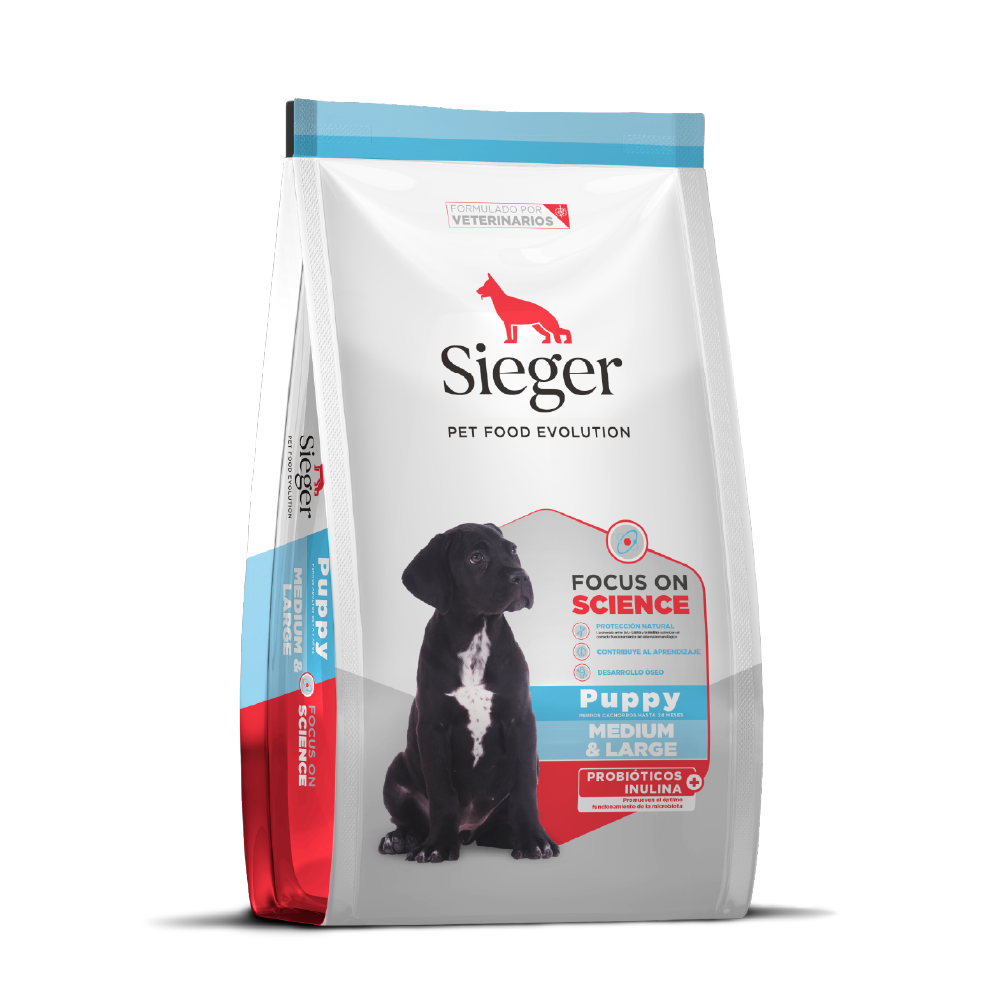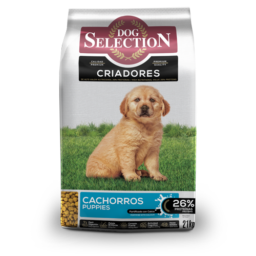 Alimento para perros cachorros razas medianas, sabor pollo y leche.