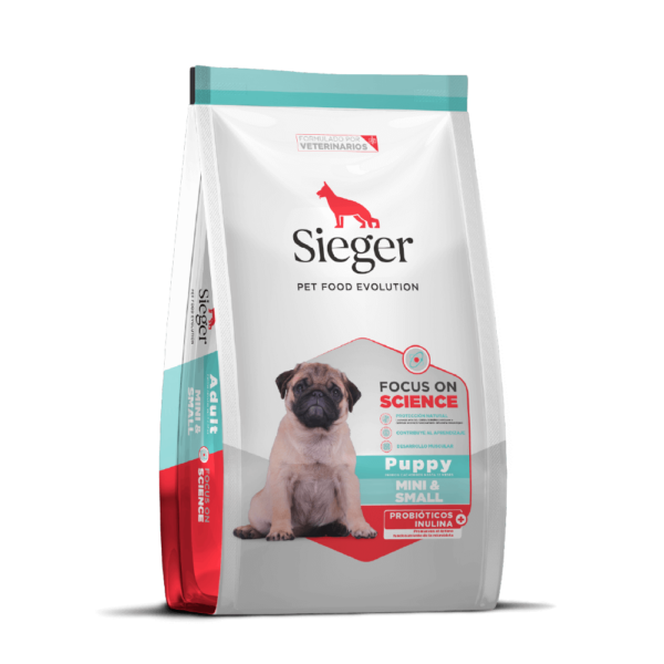 Alimento para perros cachorros de raza pequeña sabor carne y pollo.