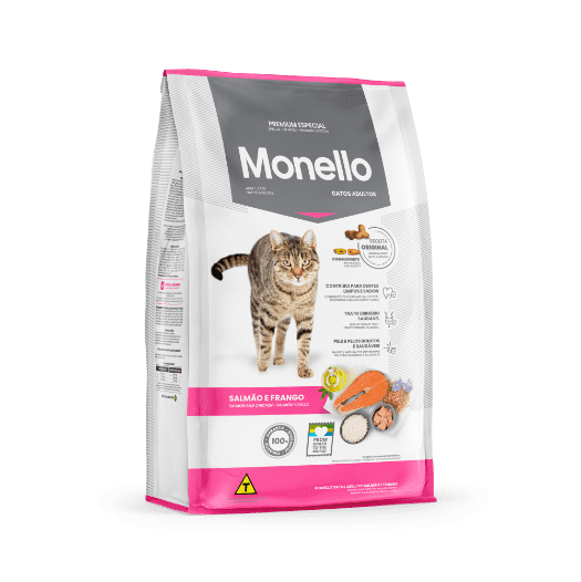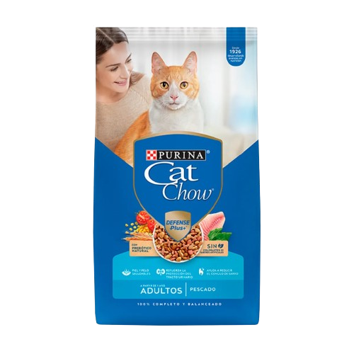 Alimento para gatos adultos sabor salmón, pescado, pollo, atún y carne.