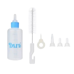 Biberones para alimentar perros y gatos, disponible en azul y verde.