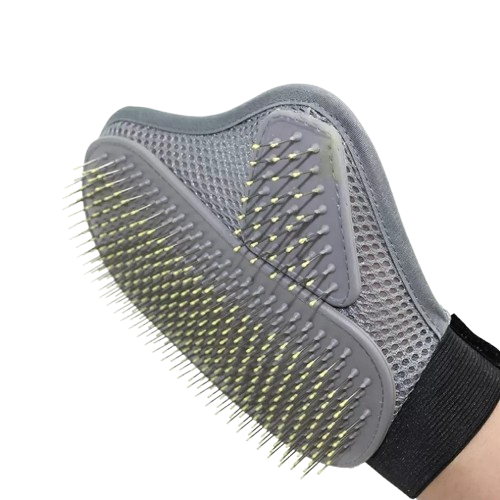 Cepillo de pelos en forma de guante disponible en color plomo.