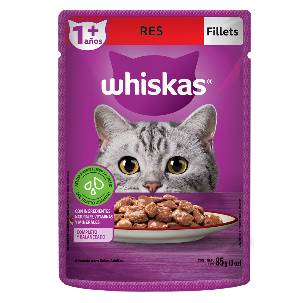 Alimento húmedo. Gatos: carne, atún, salmón, pescado blanco, pollo cangrejo y tiritas de carne. Gatitos: carne y pescado.