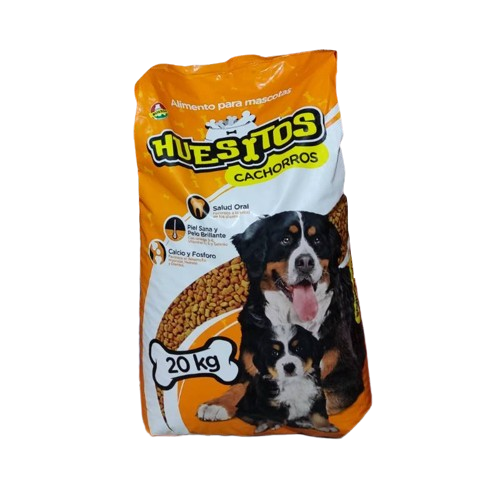 Alimento para perros cachorros de todas las razas, sabor carne y huesitos.