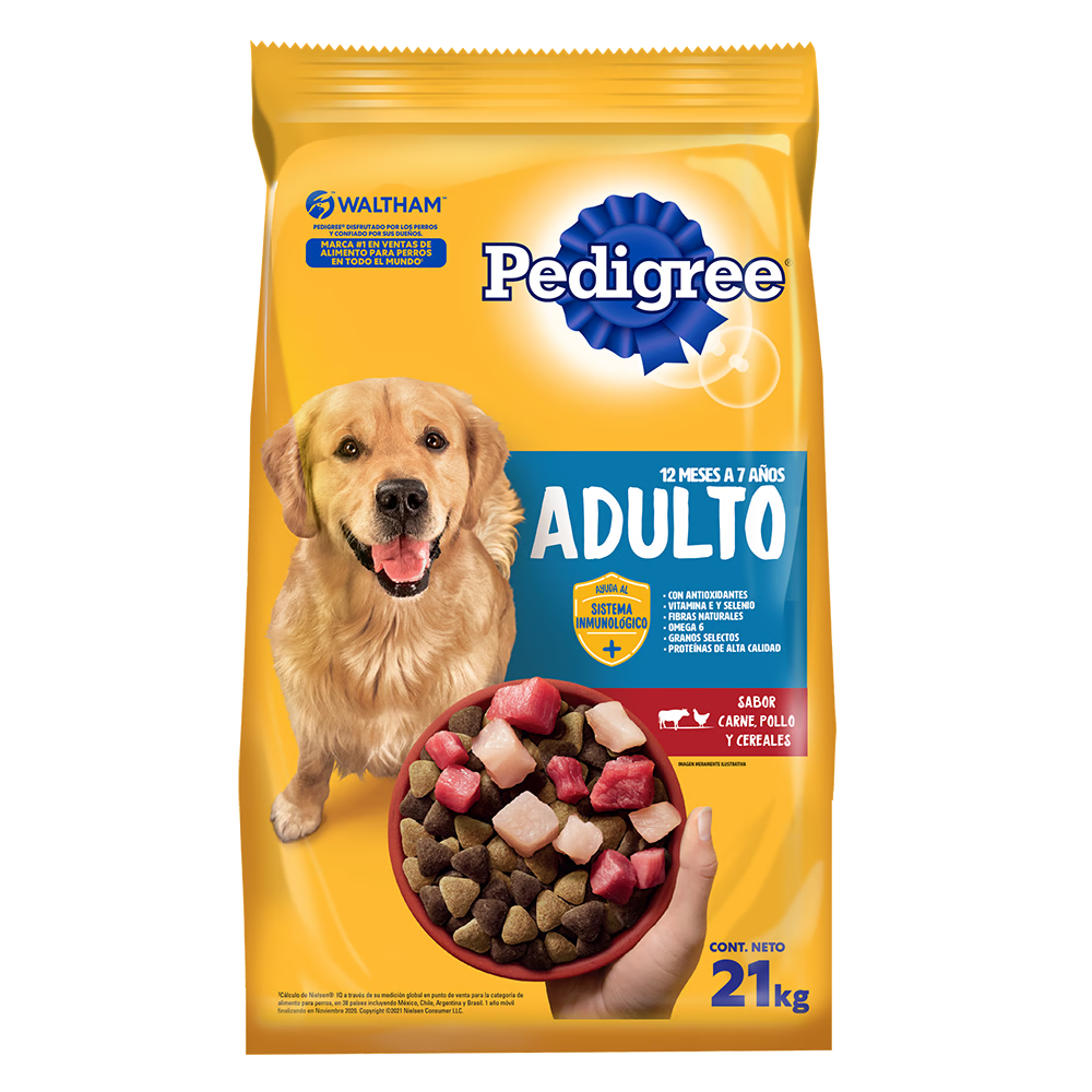 Alimento para perros adultos de todos los tamaños, sabor carne, pollo y vegetales.