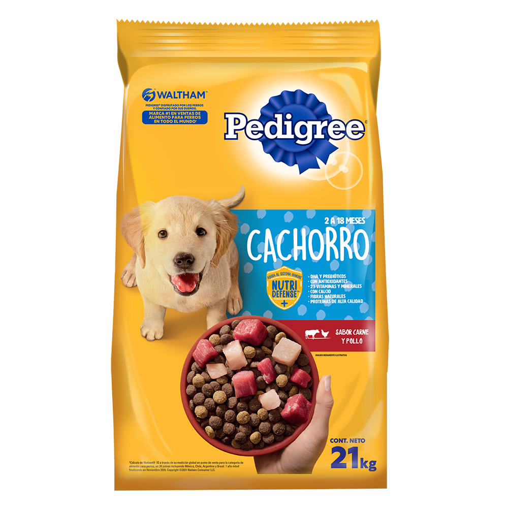 Alimento para perros cachorros de todas las razas, sabor carne y pollo.